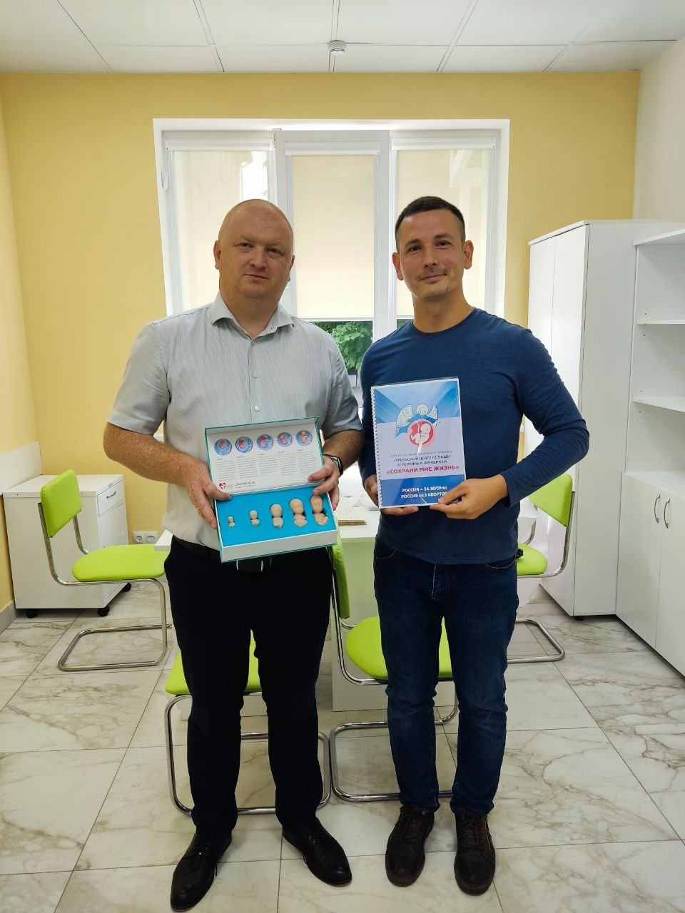 Помимо этого Андрею Александровичу в дар были преподнесены макеты эмбриончиков 1го триместра и презентация нашего центра в память о нашей миссии.