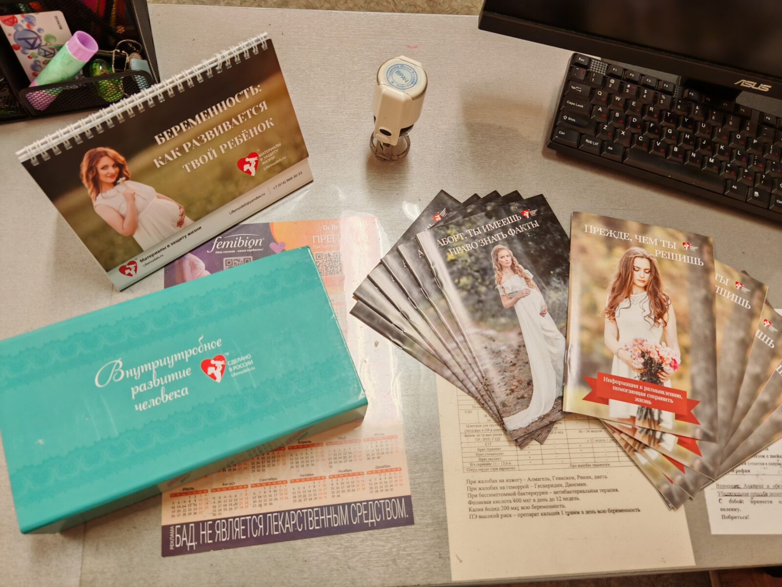 Благодаря поддержке наших неравнодушных единомышленников АНО «Сохрани жизнь» #https://clck.ru/3PMGeu в женскую консультацию ГБУЗ СО «Жигулевская ЦГБ» пришли: набор внутриутробного развития человека 1-го триместра с особым календарем с подробным описанием жизни человека внутри мамы по неделям и брошюры для просветительских мероприятий.