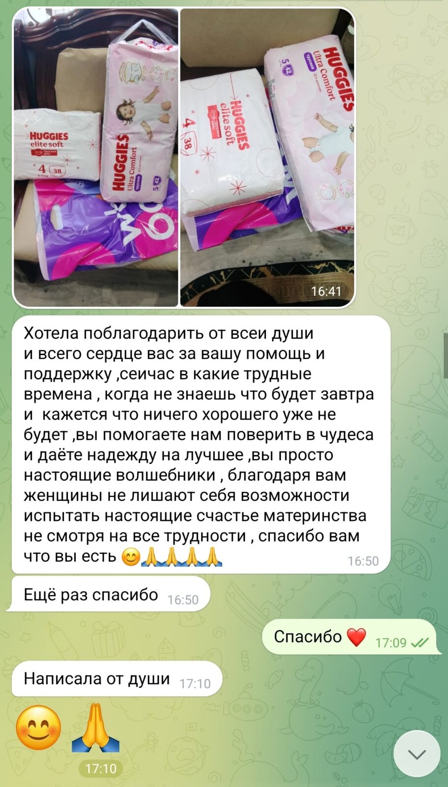 Доброе утро, друзья! Спасибо всем неравнодушным за помощь нашей подопечной мамочке и ее малышке. А это отзыв от нее. 😊